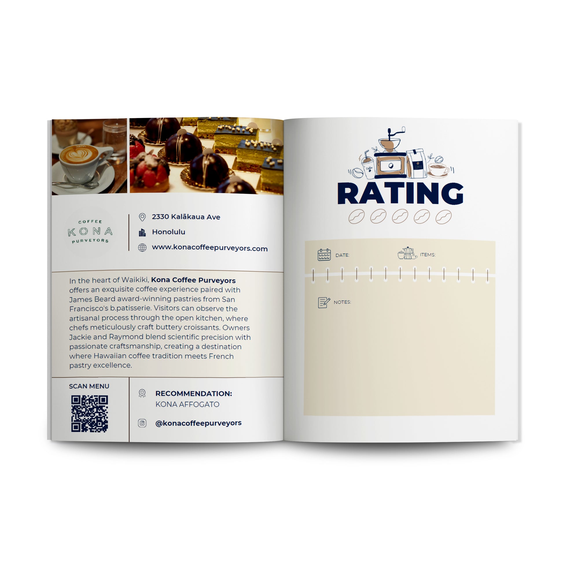 Every page is an invitation to explore. You’ll get a description that sets the scene, a recommended item to taste, and the key details to get you there. It’s a fun way to discover new cafes and turn ordinary coffee runs into memorable adventures.