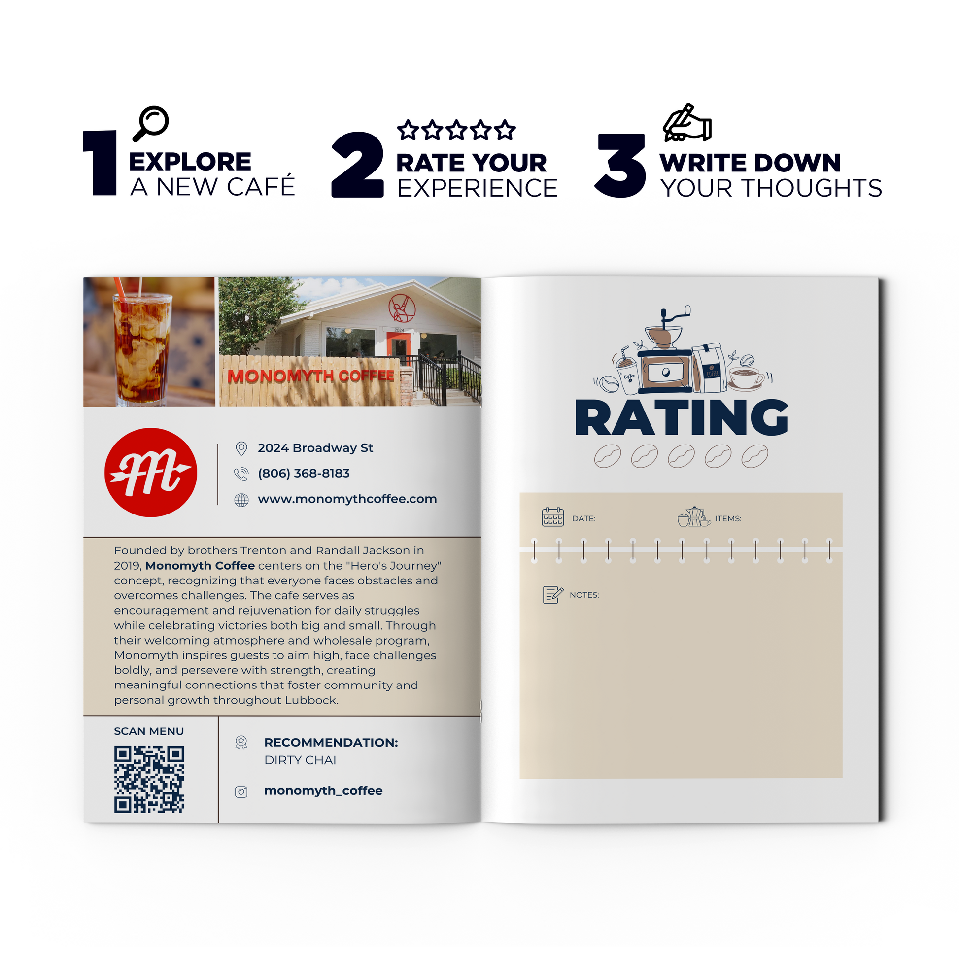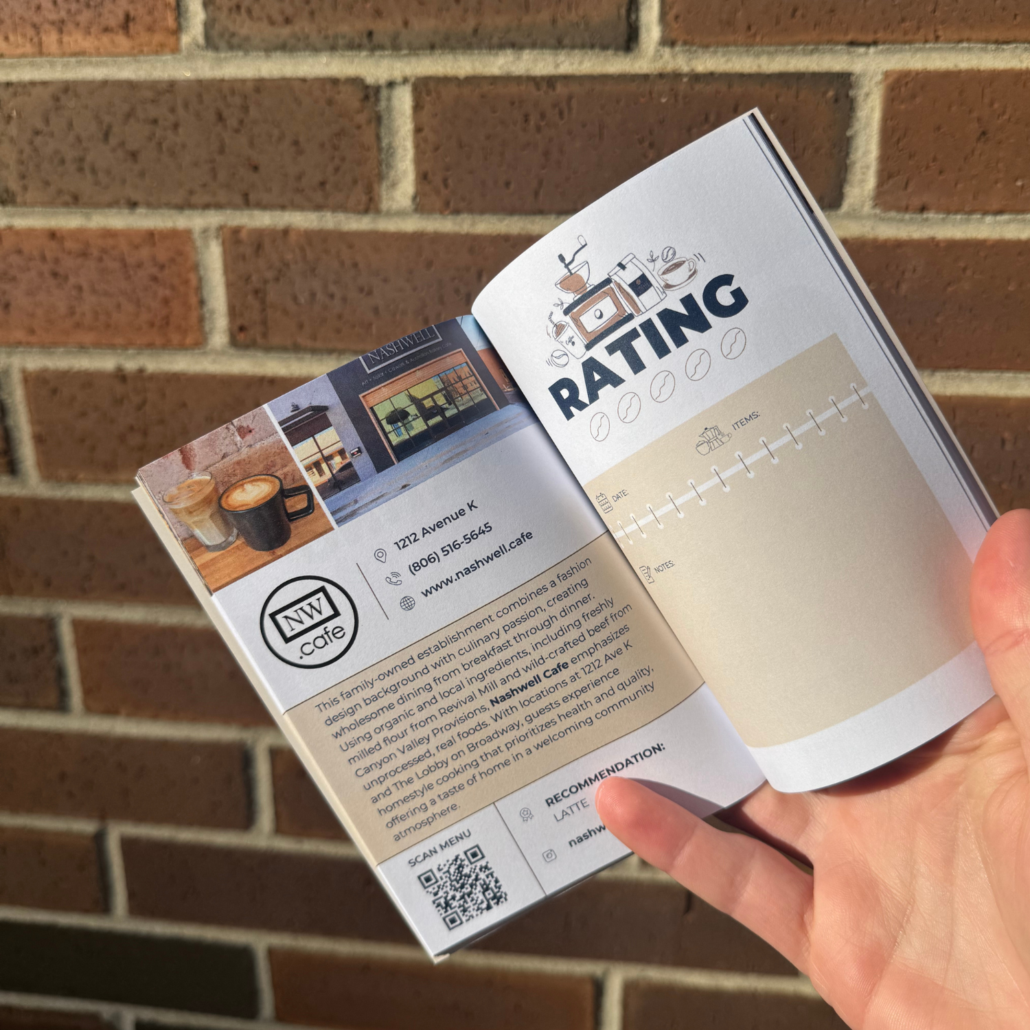 Inspired by our own caffeine-fueled adventures, this pocket-sized Cafe Passport highlights handpicked spots all across Lubbock. We built it as a fun way to track our favorite finds and push ourselves to try something new. Each cafe has its own page with a short description and a drink recommendation. Rate each stop, jot down notes, and see how many you can visit. Whether you’re a local or new in town, this guide gives you an easy excuse to explore more of Lubbock’s coffee scene, and even includes blank pages in the back for your own discoveries or travel finds.