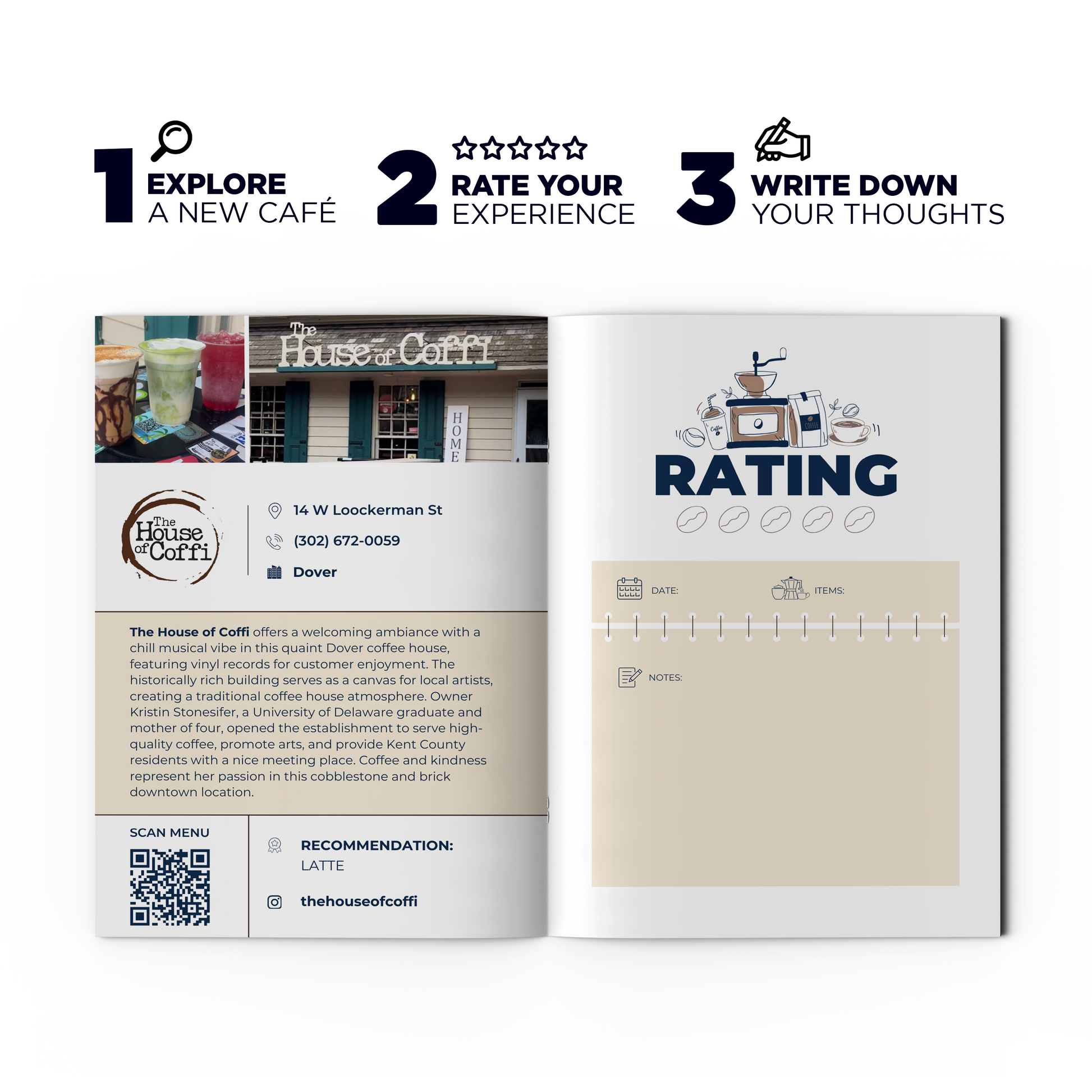 Born from our own caffeine-fueled adventures, this pocket-sized Cafe Passport features handpicked spots across Delaware. We created this guide as a fun way to document discoveries throughout the state. Each cafe has its own dedicated page that includes a description and drink recommendation. Explore a new spot, rate it out of 5, and challenge yourself to visit them all. Whether you’re a local or just passing through, this passport gives you a reason to explore Delaware’s coffee scene while creating lasting memories along the way. We’ve even left blank spots at the back for you to fill in with other cafes or ones you stumble upon while traveling.