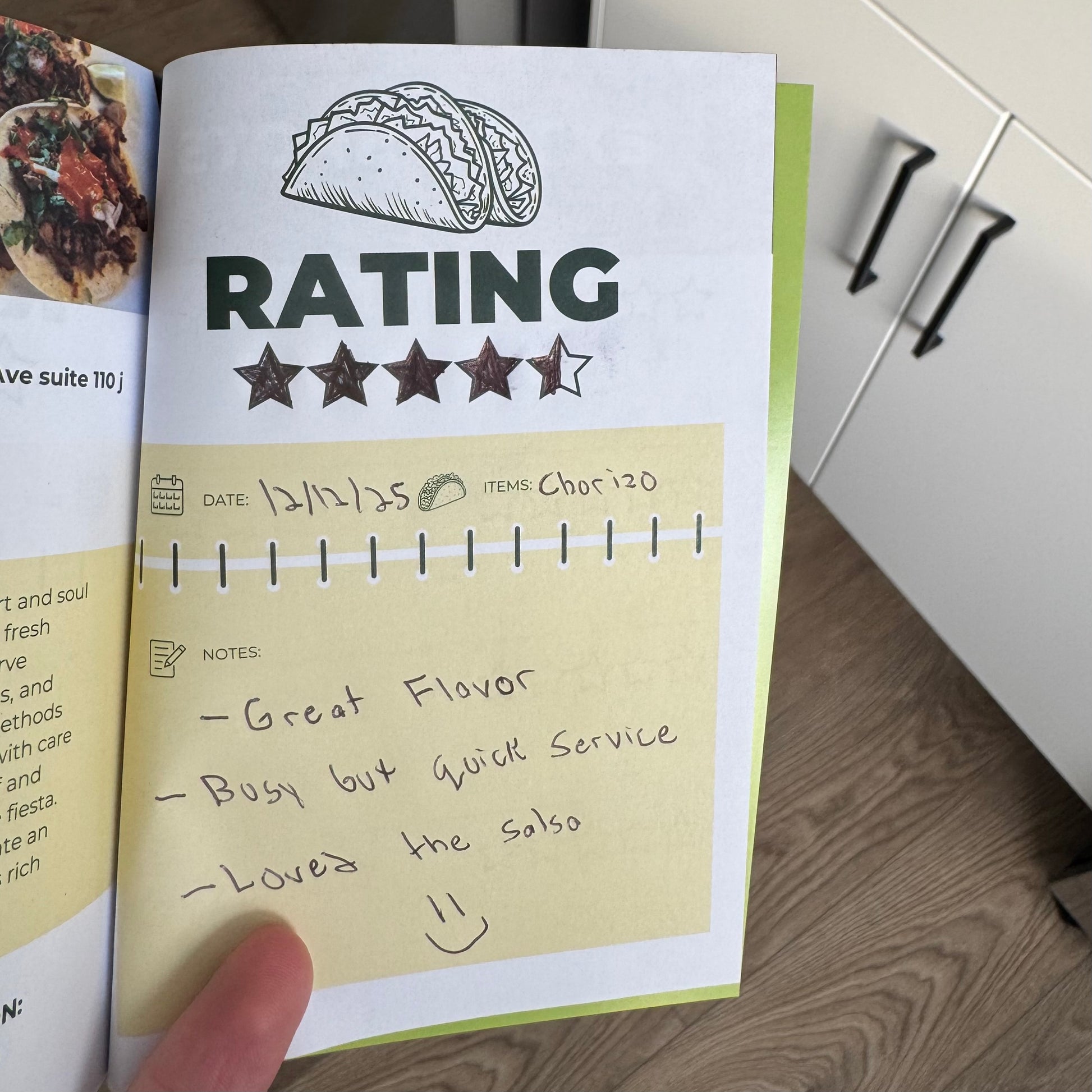 You’ll find plenty of space for rating and reviewing all the incredible taco spots you discover along the way.