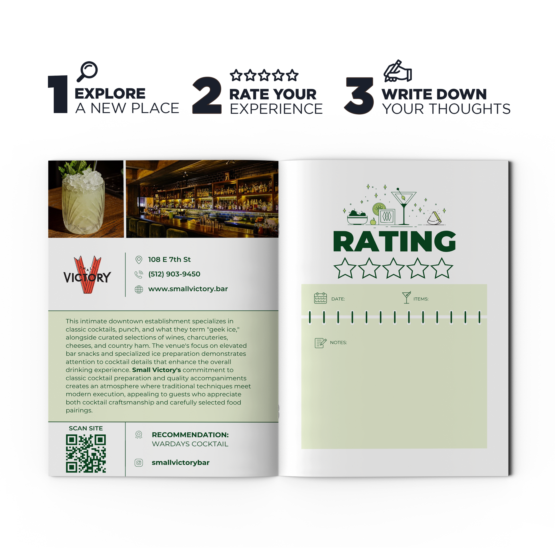 Born from our own love of craft drinks and off-the-strip gems, this pocket-sized Cocktail Passport features handpicked bars and lounges across Las Vegas. We created it as a fun way to track our favourite spots and break out of the usual routine. Each bar has its own page with a short description and a recommended cocktail. Rate each stop, jot down notes, and see how many you can visit. Whether you're a local or just in town for a few days, this guide gives you the perfect excuse to explore more of Vegas’s cocktail scene—and we’ve even included blank pages in the back for your own discoveries or future favourites.