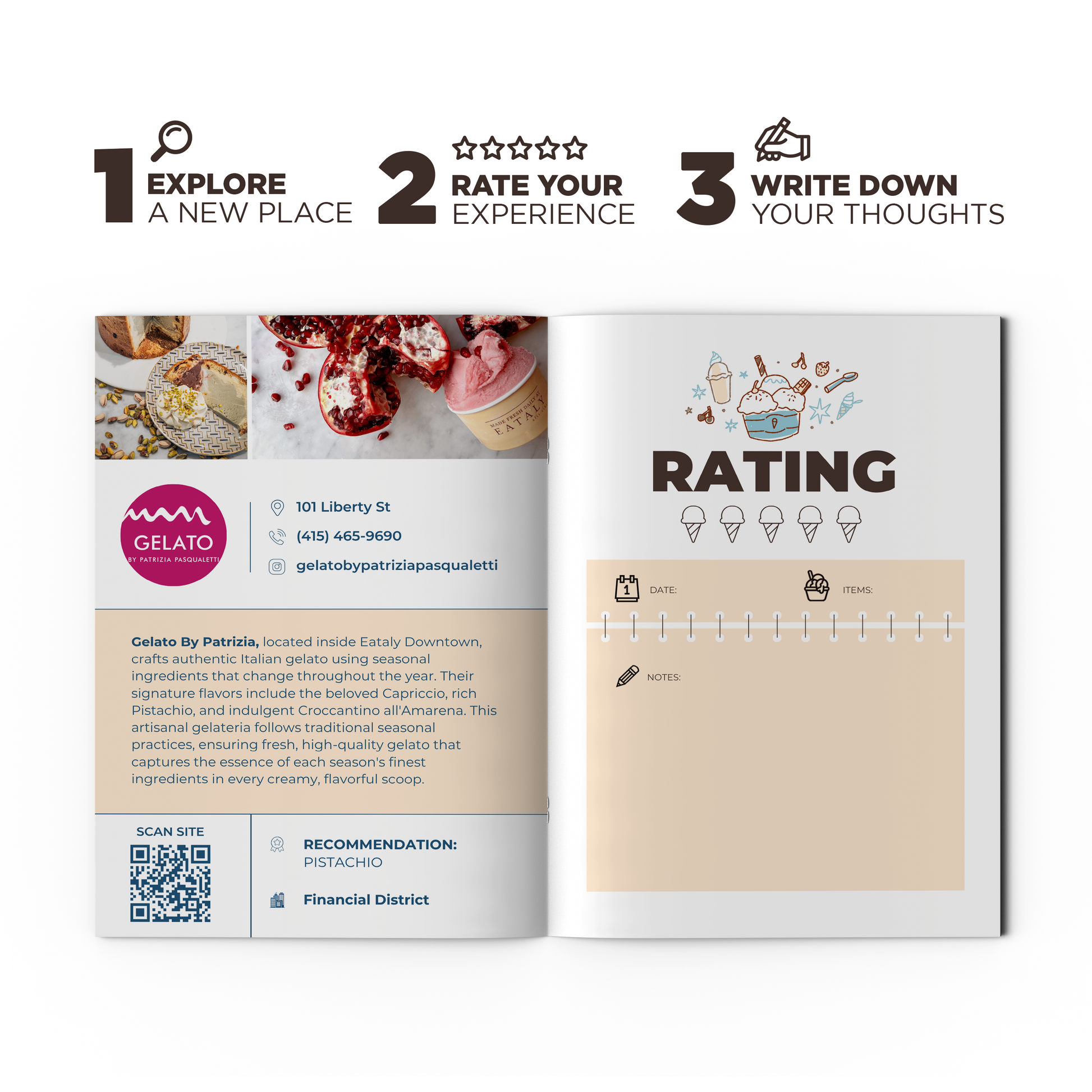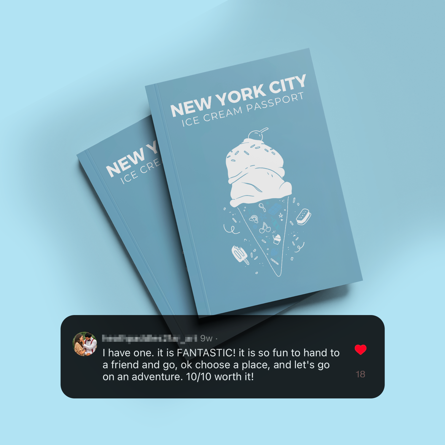Born from our own dessert-fueled adventures, this pocket-sized Ice Cream Passport features handpicked spots across New York City. We created this guide because we wanted a fun way to document our favorite scoops, cones, and sundaes from around the city. Each ice cream shop has its own dedicated page with a description and flavor recommendation. Try a new spot, rate it out of 5, and challenge yourself to visit them all. Whether you're a lifelong New Yorker or just visiting, this passport gives you a sweet excuse to explore NYC’s iconic ice cream scene—and make some delicious memories while you're at it. We've even included blank pages at the back for you to jot down any hidden gems you discover along the way.